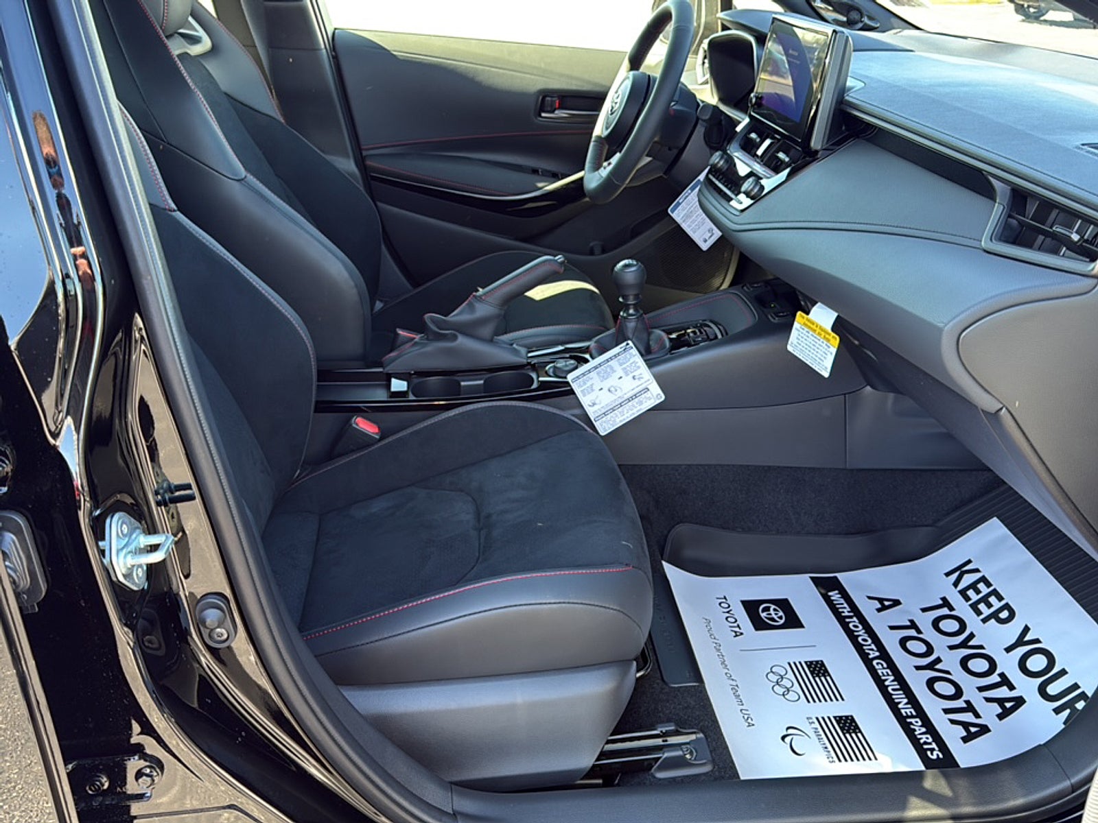 - BRIN•NAUB® and synthetic leather-trimmed sport seats with Red stitching and GR-badged headrests; 6-way adjustable driver's seat with seatback pocket; 4-way adjustable front passenger seat with seatback pocket