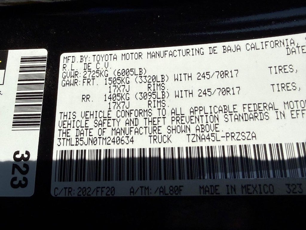 - Vehicle Name: Toyota Tacoma 4WD