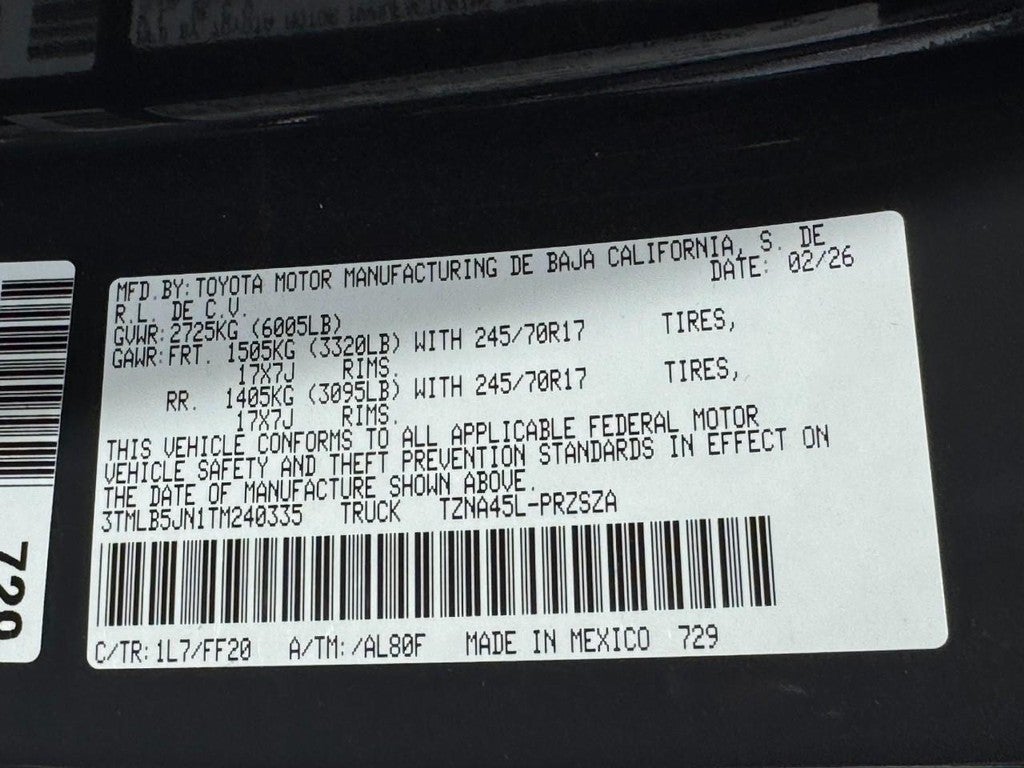 - Vehicle Name: Toyota Tacoma 4WD
