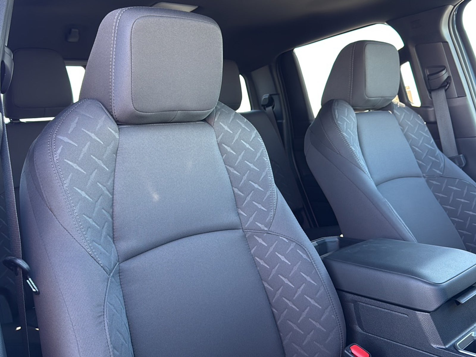 - Fabric-trimmed seats; 6-way manually adjustable driver and front passenger seats with 2-way power-adjustable lumbar support on driver's seat only